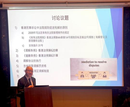 香港Liberty Chambers大律師事務(wù)所大律師馬耀添在“香港特別行政區(qū)的調(diào)解制度在民事訴訟中的角色與調(diào)解技巧”專題分享中,從香港《高等法院規(guī)則》《調(diào)解條例》《道歉條例》等相關(guān)規(guī)定出發(fā),系統(tǒng)介紹了調(diào)解制度在香港民事訴訟中的角色;并結(jié)合個人從業(yè)經(jīng)歷,分享了香港促進(jìn)式調(diào)解的經(jīng)驗技巧。