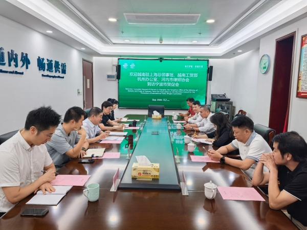 9月8日下午,越南駐上海總領事館領事梅碧玉、越南工貿部杭州辦公室首席代表羅春決、越南河內市律師協會副監事長陳友能等一行拜會寧波市貿促會,就商事法律服務、經貿合作等議題展開深入交流,攜手探尋中越企業合作新機遇與新路徑。寧波市貿促會會長顏偉國、副會長夏群進行會見。